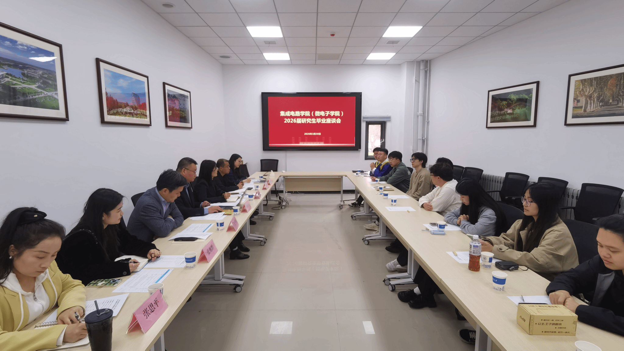 )在长安校区IC楼111会议室召开2026届研究生毕业生代表座谈会暨“工大最后一课”。学院院长马炳和、党委书记杨妮花、学院副院长王少熙、办公室主任景省利、党委组织员张思平、研究生教学秘书张奥黔、研究生辅导员王淼及2026届研究生毕业生代表参加会议。会议由杨妮花主持。